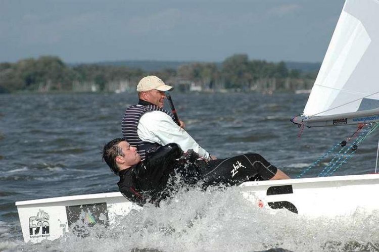 Bei stürmischen Winden zeigte Axel Fischer bei der diesjährigen Deutschen Meisterschaft der Schwertzugvögel starke Nerven auf dem Dümmer See. Trotz einer tollen Serie von drei ersten, einem zweiten und zwei dritten Plätzen lag er nach dem 6. Lauf noch einen Punkt hinter den amtierenden Meistern Thomas Shorty Schiffer und Heinz Lenz vom SKBue zurück. Mit einem beeindruckenden Start-Ziel Sieg im 7. und letzten Lauf sicherte er sich mit seinem Vorschoter Felix Schwill von der Segler Kameradschaft Essen Heisingen den Titel 2011 vor den Vorjahressiegern, die sich nach einem verunglückten Start nur noch auf Platz 6 vorkämpfen konnten und sich mit dem Vizemeister-Titel zufrieden geben mussten.