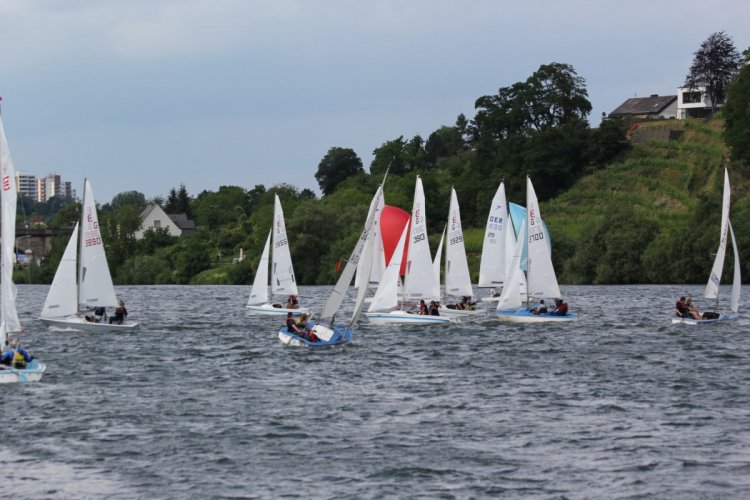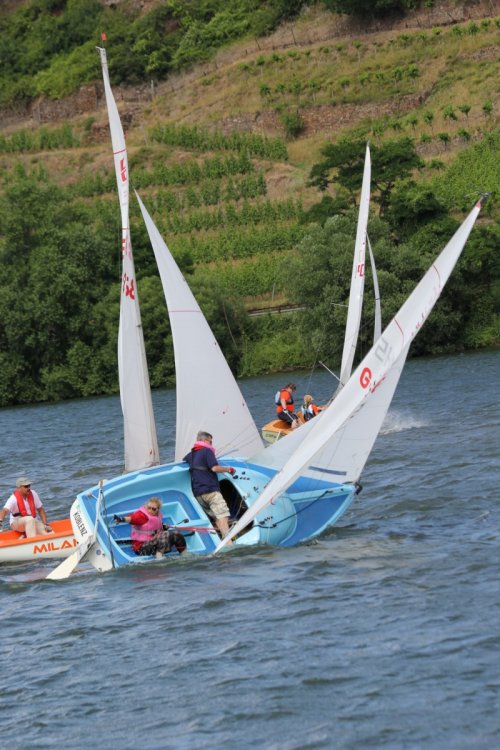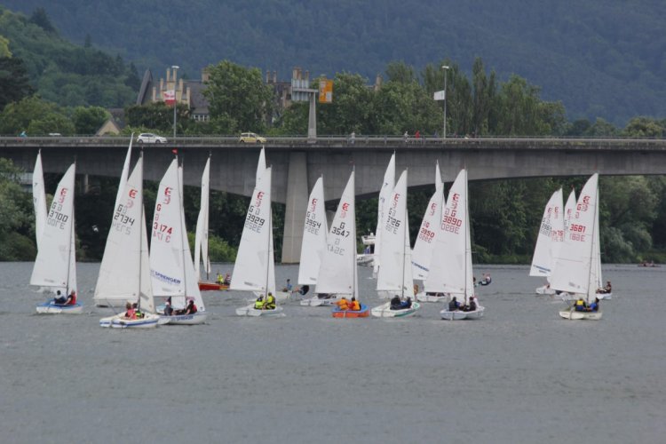 Bei der gleichzeitig gewerteten Schängel-Regatta konnten vier Läufe bei zum Teil schwierigen Windverhältnissen absolviert werden. Deshalb verlegte Wettfahrtleiter Rolf Weber die Bahn nach zwei Läufen moselaufwärts, wo ein fairer Wind wehte. Die Läufe drei und vier wurden im Kirschenstück ausgetragen. Dort segelten nur noch die Ranglisten-Klassen, da im Koblenzer Bereich kein Kreuzkurs möglich war, denn der Wind kam aus N-NW.